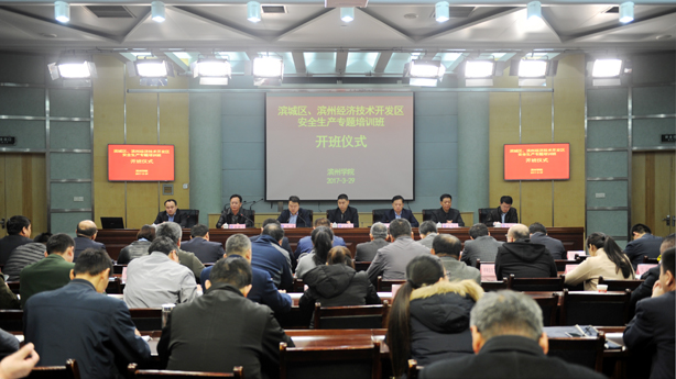 3月29日,公司承办的滨城区、滨州经济技术开发区安全生产专题培训班开班仪式在学苑会堂第三报告厅举行。公司党委委员、副董事长胡波,滨城区委常委、副区长张博,校合作发展处处长王海滨出席,郭新伟经理主持。