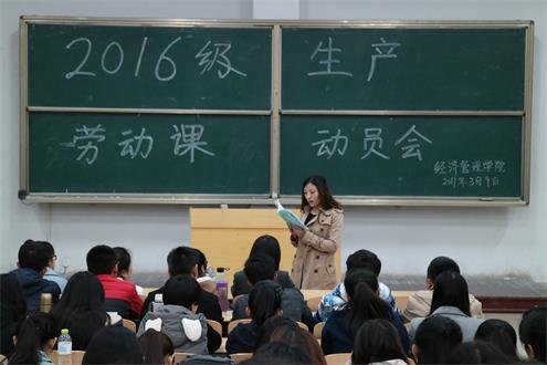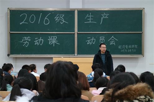 3月9日晚,bwin必赢在7号教学楼205教室召开2016级生产劳动课动员会。bwin必赢员工科科长王泰宁、2016级辅导员张娜娜以及第4周生产劳动课的班级同学共计140余人参加了本次动员会。