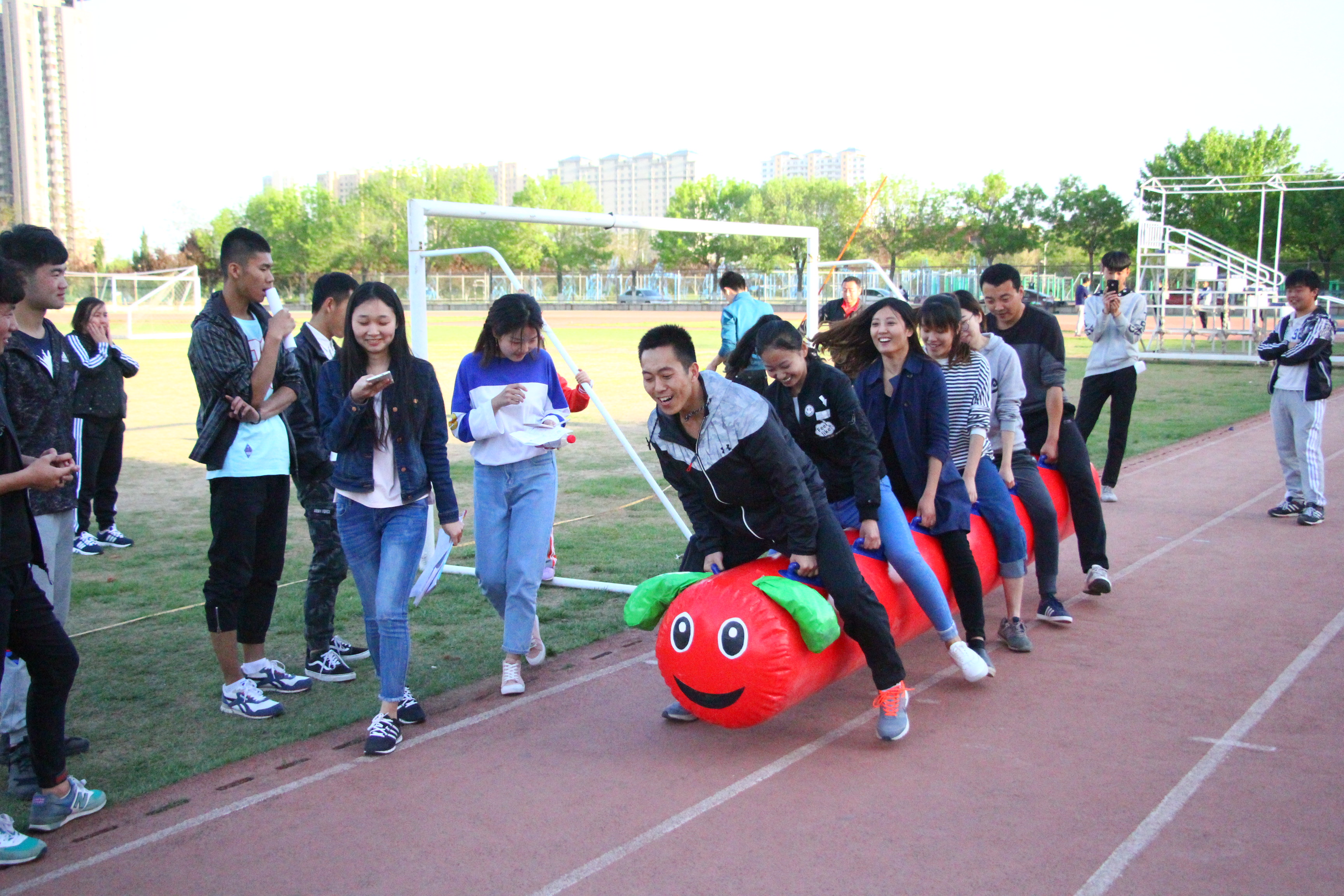 教职工们在运动中卸掉了生活和工作的压力,散发着青春和活力。在轻松愉悦又不乏激烈刺激的氛围中,身体得到锻炼、心情得到放松。同时,也增进了相互之间的友谊与了解。