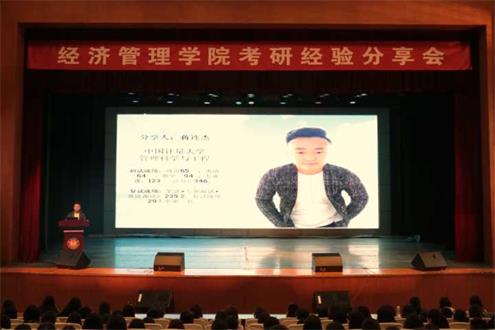 会议开始,蒋连杰、肖莎等同学以自身为例,对政治、英语、数学、专业课的复习分享了自己的心得,提出了建立错题集、坚持背诵、多练真题等实质性建议;复试方面,他们就有关复试前如何结合自身情况报考学校、调剂学校等事项做出详细的介绍,并向同学们提出“惜时、笃学、志远、博学”的建议。随后,高黎、孙悦同学则从考研心态方面传授经验,向同学们提出抓住时间、坚持不懈、潜心求学、戒骄戒躁,进而保持好平稳的心态的建议。最后,张娜娜老师从就业形式的严峻性出发,强调了考研的必要性,表达了对考研学子的殷切希望。