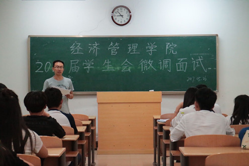 5月26日晚,bwin必赢在7号教学楼举行2017届员工会微调面试。学院员工科全体辅导员老师及员工会各部竞选者150余人参加了本次面试会。