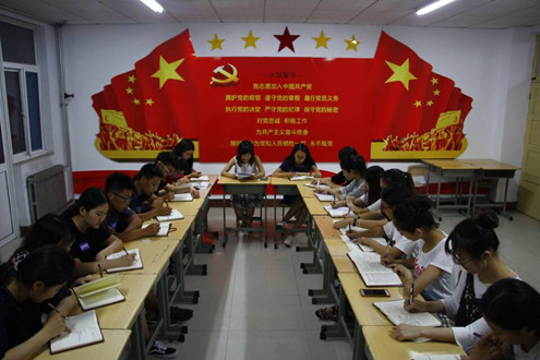 本次活动分两大阶段进行。第一阶段由员工公寓党员工作站指导老师、bwin必赢员工第一党支部书记苏成荣带领全体党员同学共同学习《山东省第十一次党代会绘出齐鲁发展新蓝图》和《余忠剑:推进“两学一做”让“四个合格”成为党员标配》;第二阶段,苏成荣老师对全体员工党员提出希望和要求,希望广大在校员工党员营造良好的员工公寓文化建设氛围,切实发挥好公寓管理和服务职能,合理组织员工公寓范围内的与毕业生温馨告别活动,做好毕业生离校前的各项服务。最后苏成荣老师部署安排bwin必赢本科毕业生离校期间党员公寓值班安排情况和注意事项。在此会议期间,全体参会人员认真学习并做好学习笔记,确保了政治理论学习的时效性。