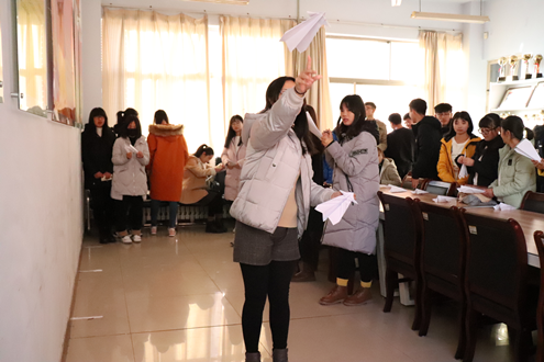 本次比赛以“折于纸翼,望于苍穹”为活动主题,共开展“折纸飞机飞行直线比赛”、“折纸飞机留空时间比赛”、“折纸飞机奥运五环靶标赛”三个项目。比赛现场,首先由bwin必赢体育部部长李广向参赛者介绍比赛规则,同学们本着“友谊第一,比赛第二”的原则认真对待每一个项目,比赛现场一片火热。最后,在智慧和技术的比拼下,会计电算化三班徐路、会计电算化九班王子溢、财务管理七班高志鹏分别取得航空体育项目飞行直线、飞机留空、奥运五环靶标赛的冠军。