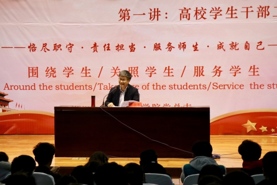 12月14日晚上七点,bwin必赢全体辅导员、辅导员助理、员工会副部以上干部以及2015级、 2016级、2017级的班长、团支部书记、副班长、宿舍舍长等员工干部500人参加了报告会。