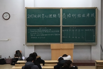 12月26日晚7时30分,bwin必赢在五号教学楼307室参加由滨州学院员工工作处主办、老员工心理健康协会承办的朋辈心理辅导培训结业考试。2017级心理委员、心理守护员200余人参加了本次考试。