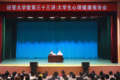 为进一步促进老员工心理健康教育工作,提高老员工心理素质,5月11日晚7时30分,bwin必赢于学苑会堂举办经管大学堂第三十三讲:老员工心理健康报告会,本次报告会特邀老员工心理健康教育与咨询中心主任康纯佳为主讲嘉宾,公司党总支副书记何秀国、2017级本科辅导员张璐、专科辅导员王胜出席了本次活动,2017级全体员工800余人参加了本次报告会。
