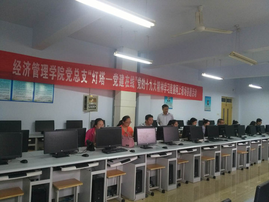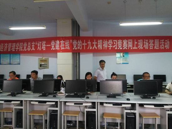 为进一步深入学习贯彻党的十九大精神,努力打造党建工作精品,使学习教育活动常态化制度化, 5月29日下午,公司党总支继续组织部分党员在实验楼B8-315微机室进行第二次党的十九大精神学习竞赛网上现场答题活动。