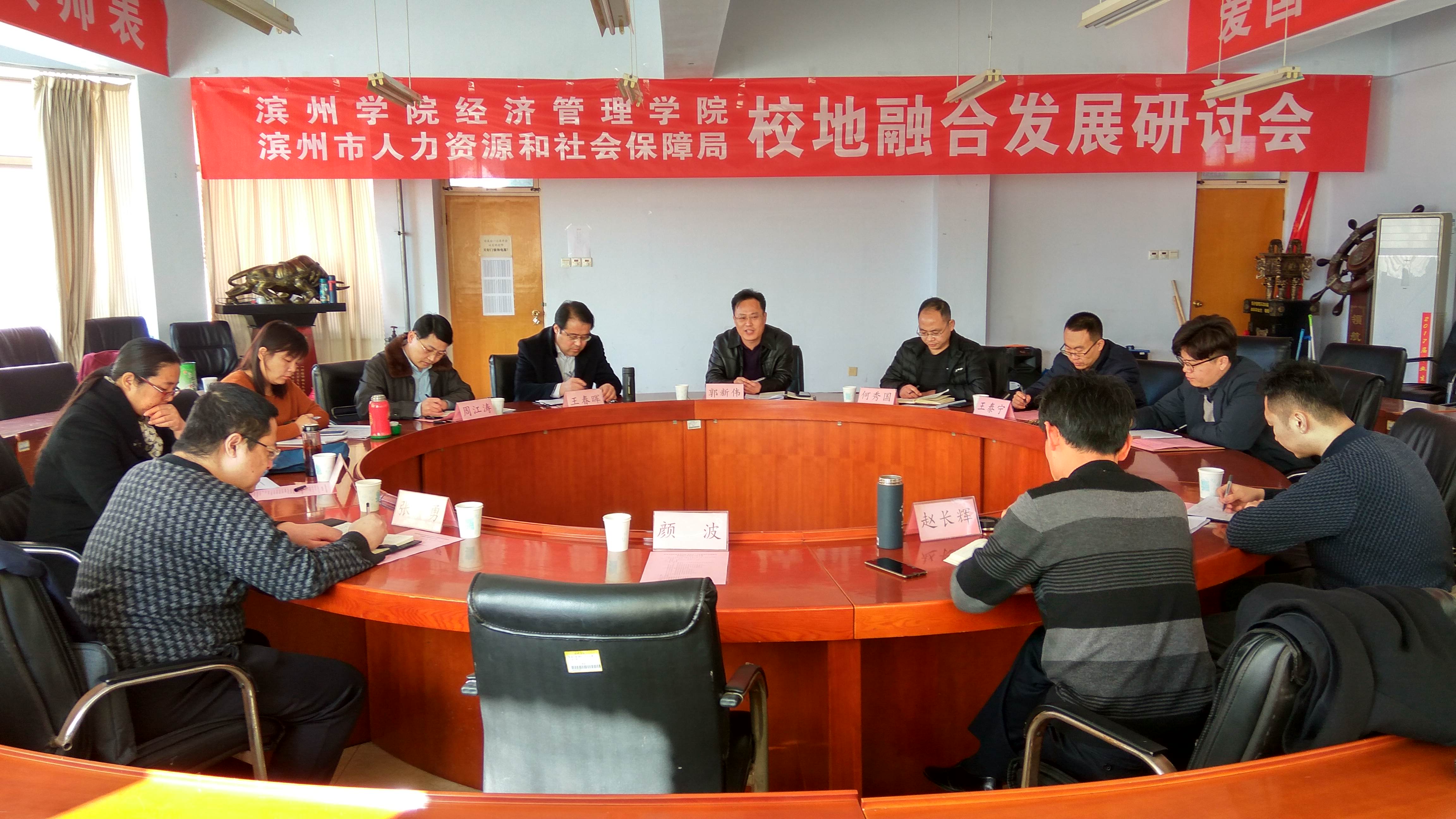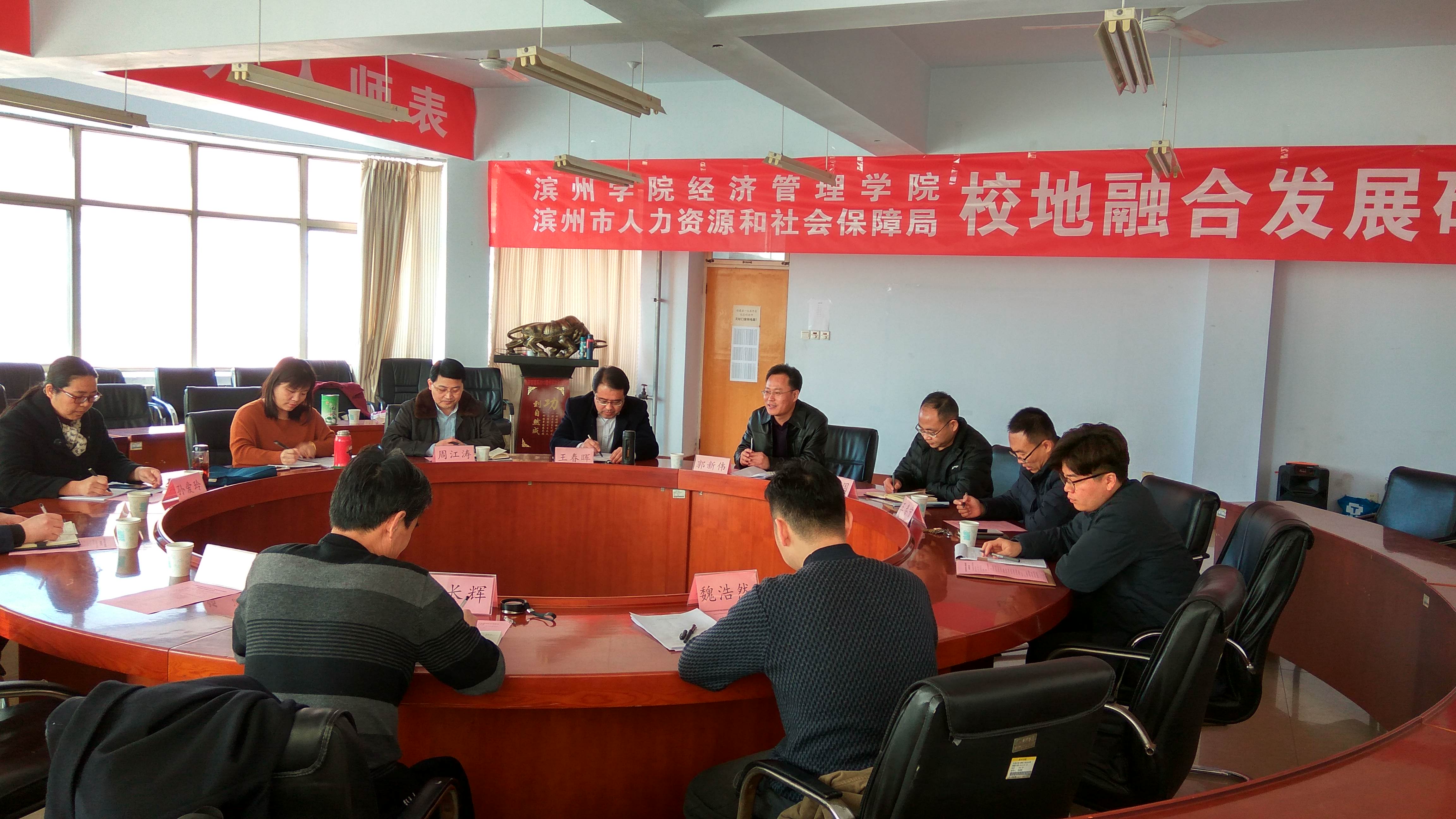 为深入全面推动校地融合发展,服务地方经济社会高质量发展,助力“富强滨州”建设,3月13日,公司与滨州市人力资源和社会保障局联合召开校地融合发展研讨会。滨州市人力资源和社会保障局党组成员、副局长颜波,滨州市劳动就业办公室主任张勇一行5人参会,经理郭新伟、副经理王春晖、副书记何秀国出席,校团委挂职副书记、公司就业科科长王泰宁及部分骨干教师参加研讨,副经理周江涛主持。