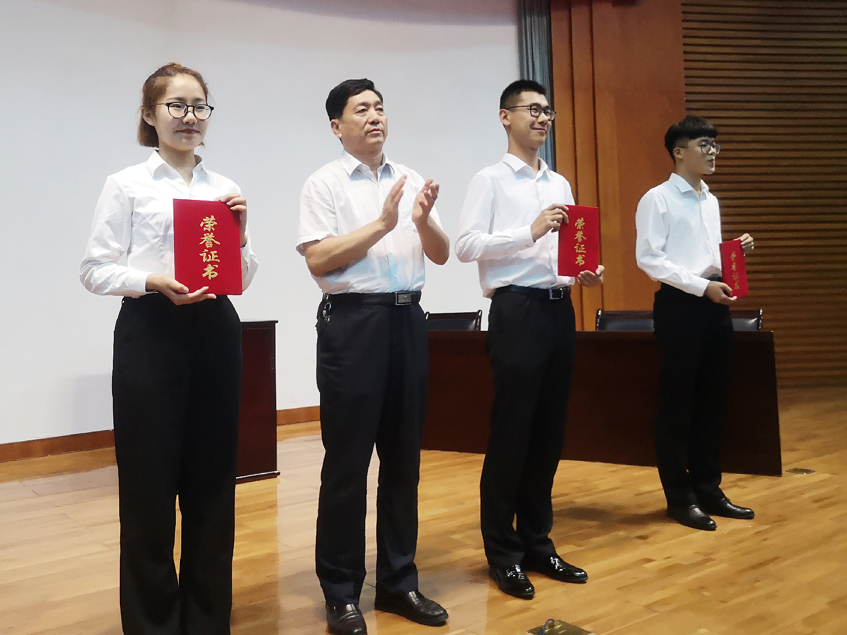 方获胜,正方二辩、反方三辩获“最佳辩手”称号,公司党总支书记崔玉海为获奖集体及个人颁奖。活动最后,全场师生起立深情唱响《我和我的祖国》,献礼祖国七十华诞。伴随着歌声,本次辩论赛圆满落幕。