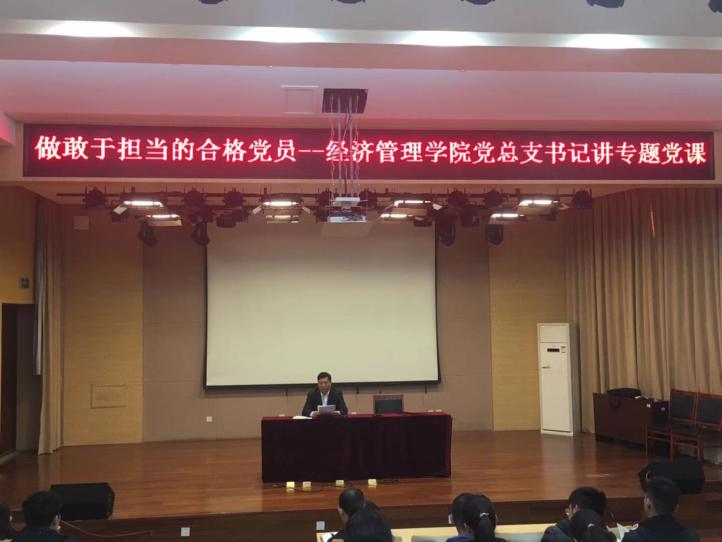 为深入推进“不忘初心、牢记使命”主题教育,进一步深化党员思想认识,11月7日下午,公司党总支书记崔玉海同志在4教308报告厅为全体师生党员、辅导员、班主任及部分入党积极分子讲了一堂题为《做敢于担当的合格党员》专题党课。