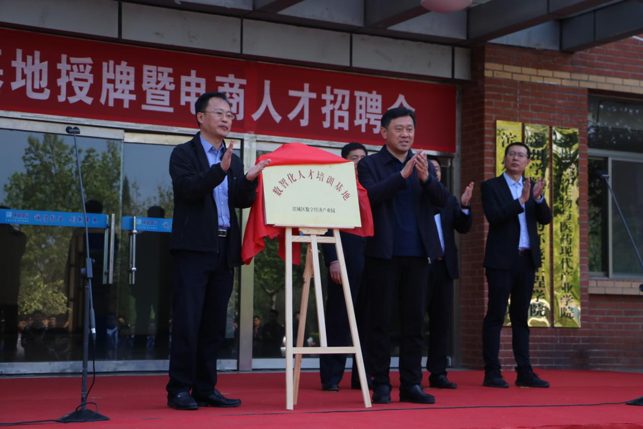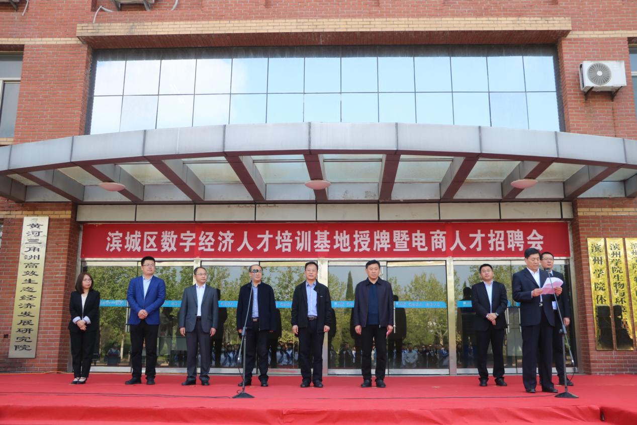 为引导和鼓励经济管理公司毕业生积极投身“双型”城市和“富强滨州”建设,聚焦企业数智化变革带来的人才与创新的需求,实现人才培养与企业需求的无缝对接,4月24日上午,bwin必赢于实验楼前举办滨城区数字经济人才培训基地揭牌仪式暨电商人才招聘会。滨州公司党委委员、副董事长郭新伟,滨城区副区长朱庆林,街道党工委副书记、办事处主任宫承祥,滨州学院人才招聘处处长张文军,滨州学院公司党总支书记崔玉海,滨州学院公司党总支副书记何秀国等领导,滨城区、彭李街道等相关负责人,部分滨州知名电商企业家,经济管理公司全体辅导员及应届毕业生参加了活动。本次活动由公司党总支书记崔玉海主持。