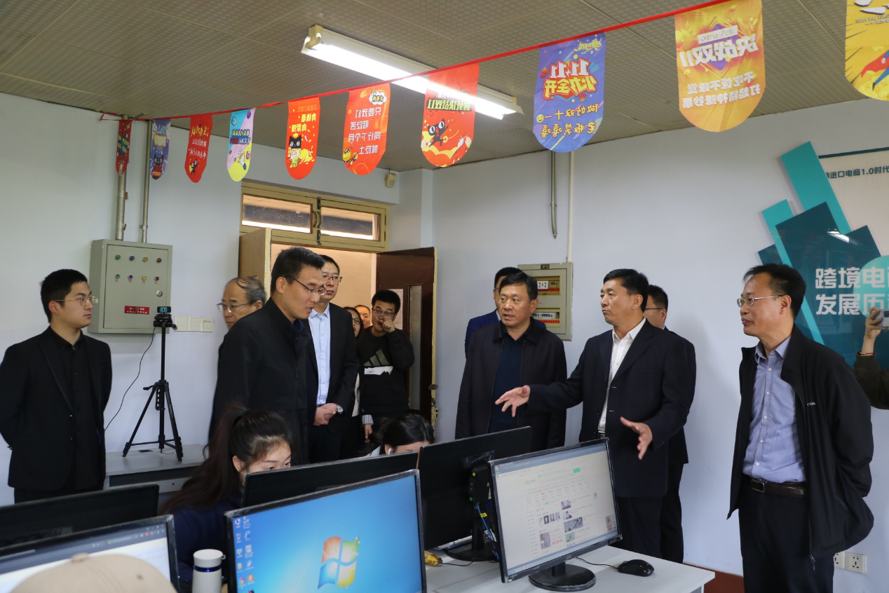仪式结束后,与会人员走进实验楼,参观bwin必赢数字经济产业学院电子商务实训场景。同时,参会的企业负责人到电商培训教室与参训员工进行精准对接。