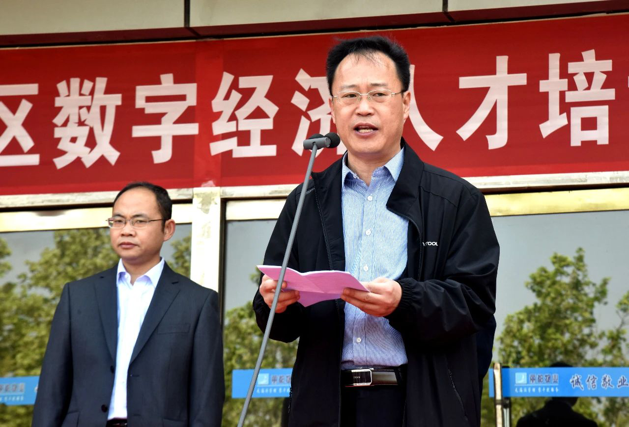 首先,滨城区副区长朱庆林同志讲话。他说,去年以来,滨城区加快城市经济转型发展的步伐,以数字经济产业园为切入口,全力破解经济结构不合理、发展后劲不足的瓶颈难题。数字经济产业园总建筑面积约25000平方米,主楼23层,地下1层,可同时容纳近50家电子商务总部同时入驻。截至目前,已有鲨鱼菲特、阿里巴巴、十方云播、十方云服4家头部企业入驻。山东华拓网络—翠鸟数社大数据、牙博士、图腾商贸3家企业已经完成入驻签约。到年底,入驻项目将达到15个,实现销售收入10亿元,带动增加就业1500人。朱庆林指出,滨城区数字经济产业园瞄准全省一流目标,努力成为全市经济转型发展的桥头堡。而高质量发展最终靠的是人才,人才是“第一动力”。电子商务和新零售模式快速推开,社会对电子商务人才的需求越来越迫切。正所谓“栽下梧桐树,引得凤凰来”,现在平台已经搭就,需要各方英才投身现代化新滨城建设中来。