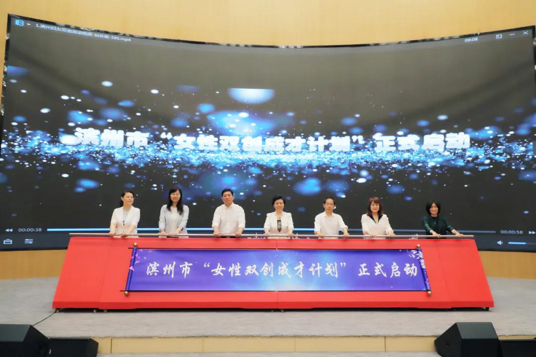 在第一阶段的“女性双创成才计划”启动仪式上,市妇联党组书记、主席郑玉梅,市妇联副主席钱晖,市公共就业和人才服务中心副主任邵长贵,滨州学院公司党总支书记崔玉海,滨州渤海先进技术研究院董事、总经理岳晓彤,滨州大学饭店董事长李茜,滨州娇点商贸有限公司董事长刘晓蓬共同启动“女性双创成才计划”。