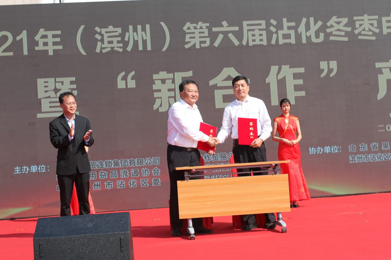 本次节会由中共滨州市沾化区委、沾化区人民政府、新合作商贸连锁集团有限公司、中国合作商贸企业协会等6个部门主办,滨州市供销合作社、沾化区商务局、农业农村局等6个单位协办;山东省供销社党组成员、监事会副主任胡文朴,沾化区区委书记袁志勇,副书记陈玉娟等50余名领导、嘉宾及部分优秀电商企业代表和枣农出席了此次会议。
