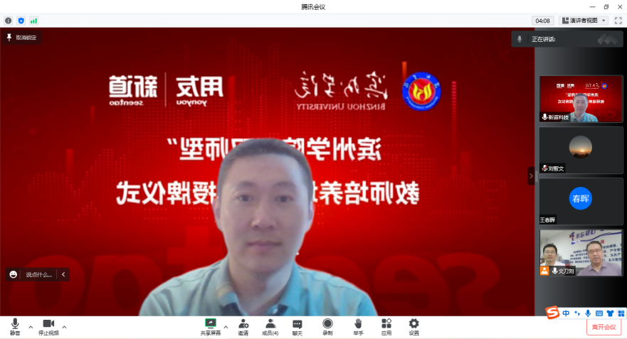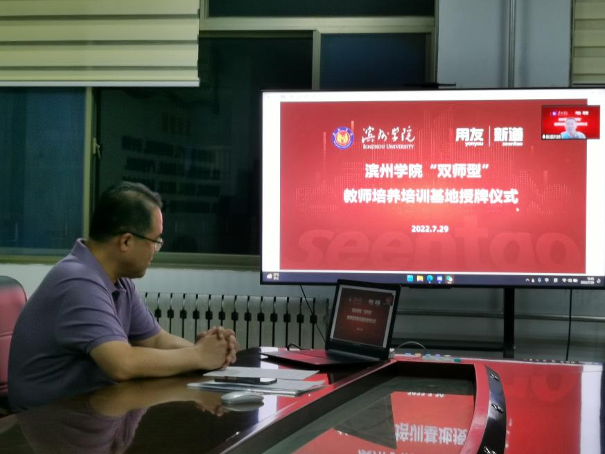 7月29日,滨州学院bwin必赢与新道科技股份有限公司成功举行“双师型”教师培养培训基地线上授牌活动。会议由bwin必赢经理王春晖主持,新道科技公司山东分公司总经理法宁、区域负责人刘智文及相关老师参会。